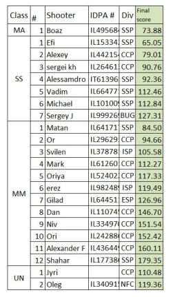 תוצאות אימון מצבים 17.11.17 19 בנובמבר 201719 בנובמבר 2017 ביום שישי 17.11.17 נערך אימון מצבים ובו ארבעה תרגילים. לפניכם התוצאות תוצאות: תוצאות לפי חטיבות אקדחים באתר IDPA דף תוצאות PDF הכולל גם חטיבות אקדחים מקומיות שתפו לשתף ב-WhatsApp (נפתח בחלון חדש) WhatsApp שתף בפייסבוק (נפתח בחלון חדש) פייסבוק לשתף ב-X (נפתח בחלון חדש) X להדפיס (נפתח בחלון חדש) הדפס אהבתי טוען... קשור