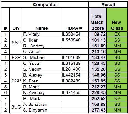 ביום שישי 17.01.20 נערכה השלמה לקלאסיפייר שתוכנן לרבע אחרון של שנת 2019 אשר נדחה בשל תנאי המטווח. להלן התוצאות